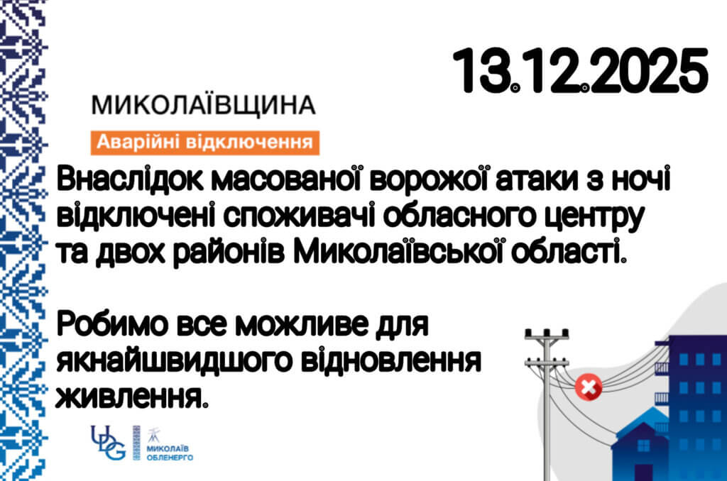 Енергетики працювали всю ніч і продовжують ліквідацію наслідків ворожого обстрілу в ніч на 13 грудня.